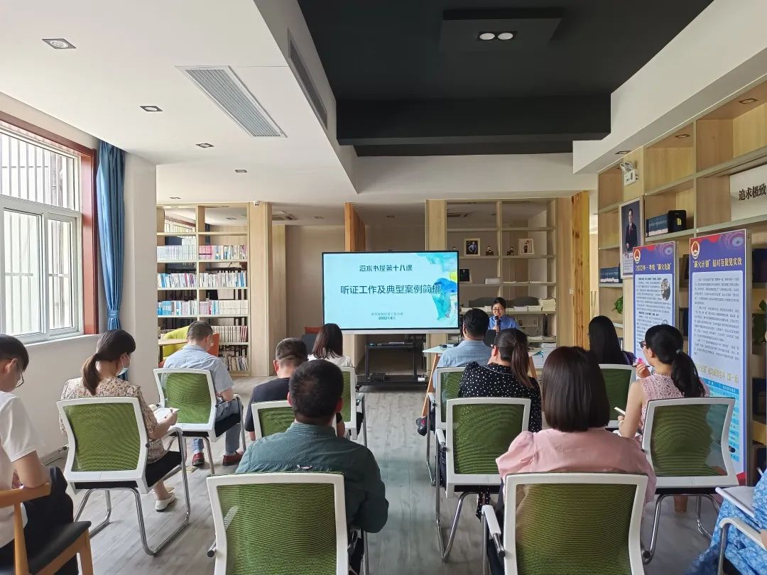 检察听证是检察机关促进司法公开、公正和矛盾化解,提升司法公信的重要举措。为进一步加强和规范听证工作,6月6日下午,泗阳县检察院组织开展泗水书屋第十八课授课活动,由第六检察部副主任王芳从近期最高人民检察院印发的人民监督员工作典型案例展开,结合往期该院组织的听证活动讲解人民监督员工作和听证工作。
